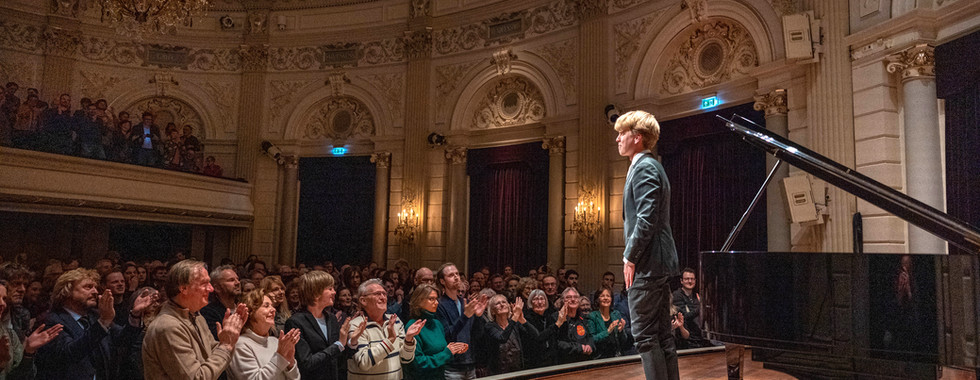Van Engelenhoven presents an extremely diverse program this evening. After a beloved sonata by Mozart, you will hear the latest collaboration with composer Ramin Amin Tafreshi in a world premiere of a major work that will reflect on the questions and tensions of our time. After the break, you will hear music by composers who all lived on the West Coast of the United States, but whose roots lay elsewhere. Famous preludes by Rachmaninoff are followed by film music by Franz Waxman and Bernard Herrmann, including a suite from Hitchcock's Vertigo , composed and arranged by Van Engelenhoven.